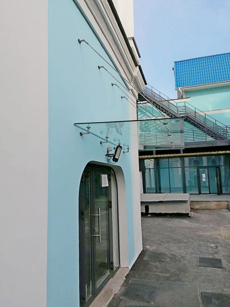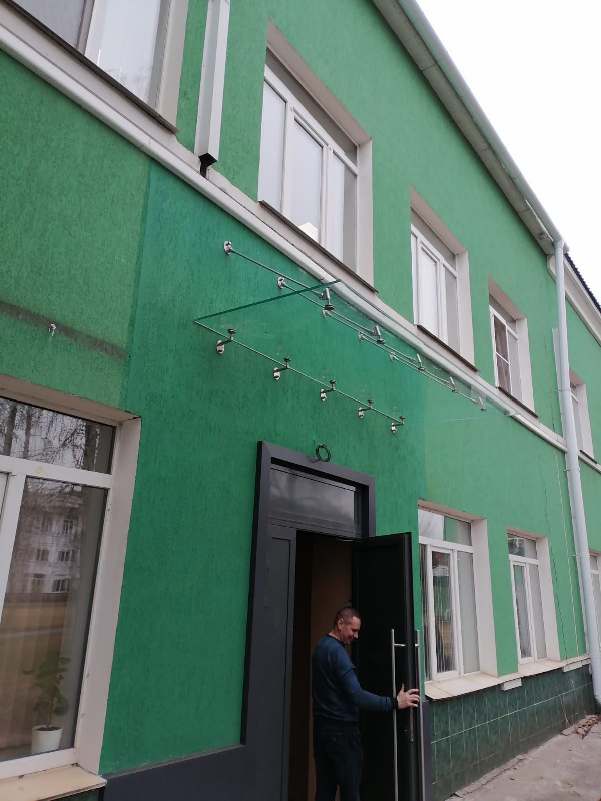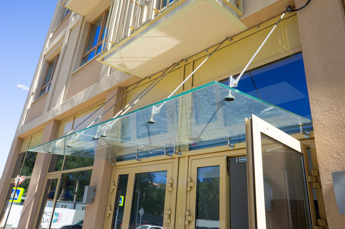 В случае, если необходимо установить стеклянные козырьки на большие площади, мастера создают дополнительные несущие конструкции. Для таких целей чаще всего используется нержавеющая сталь, или другой обработанный металл.