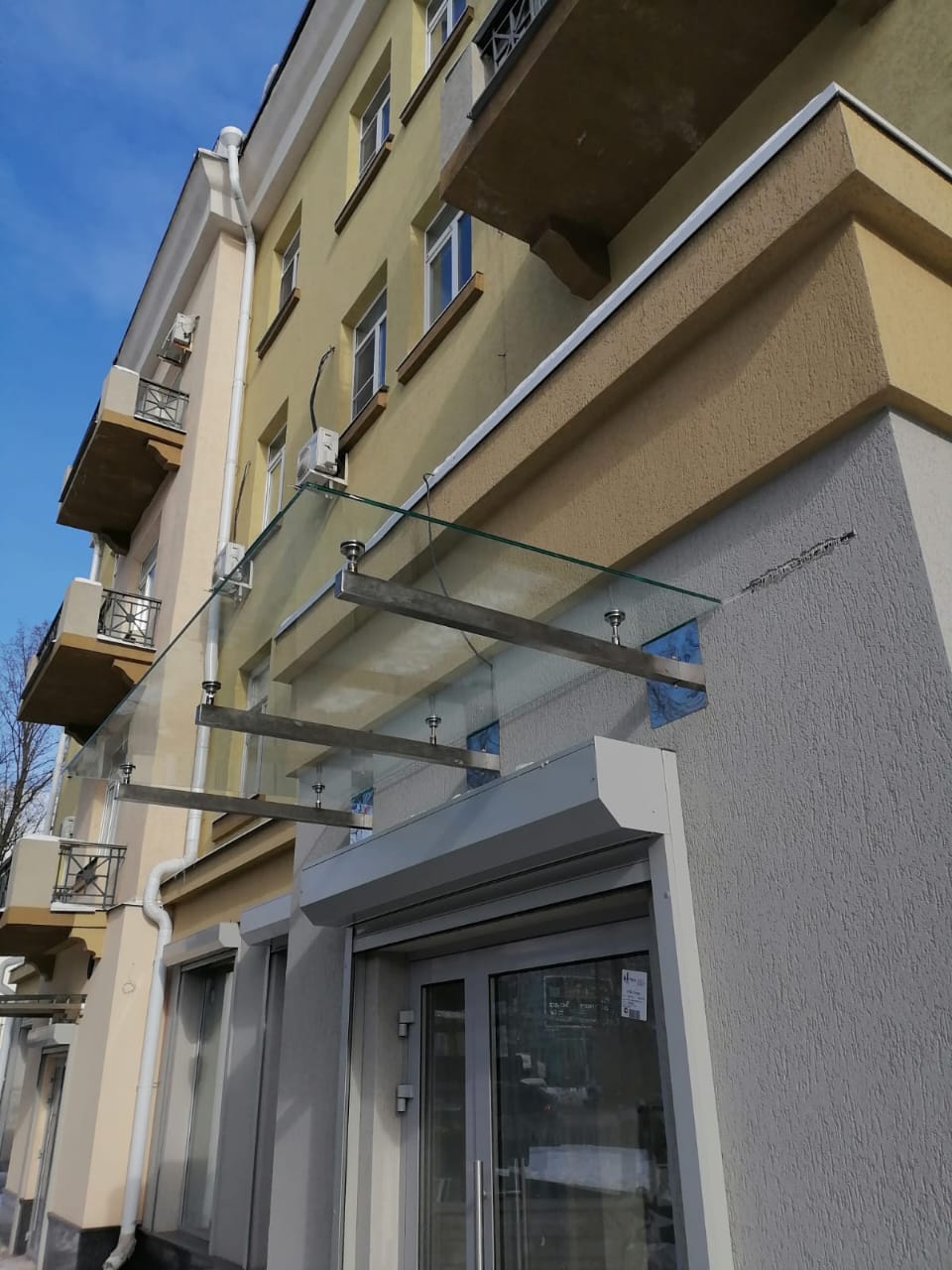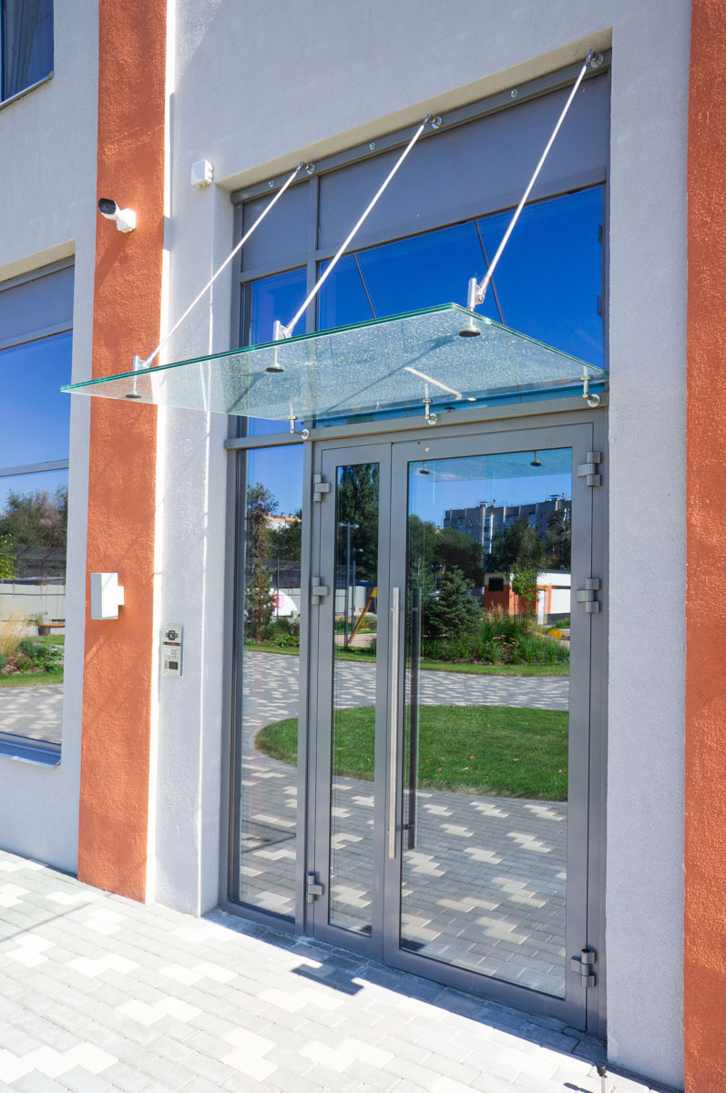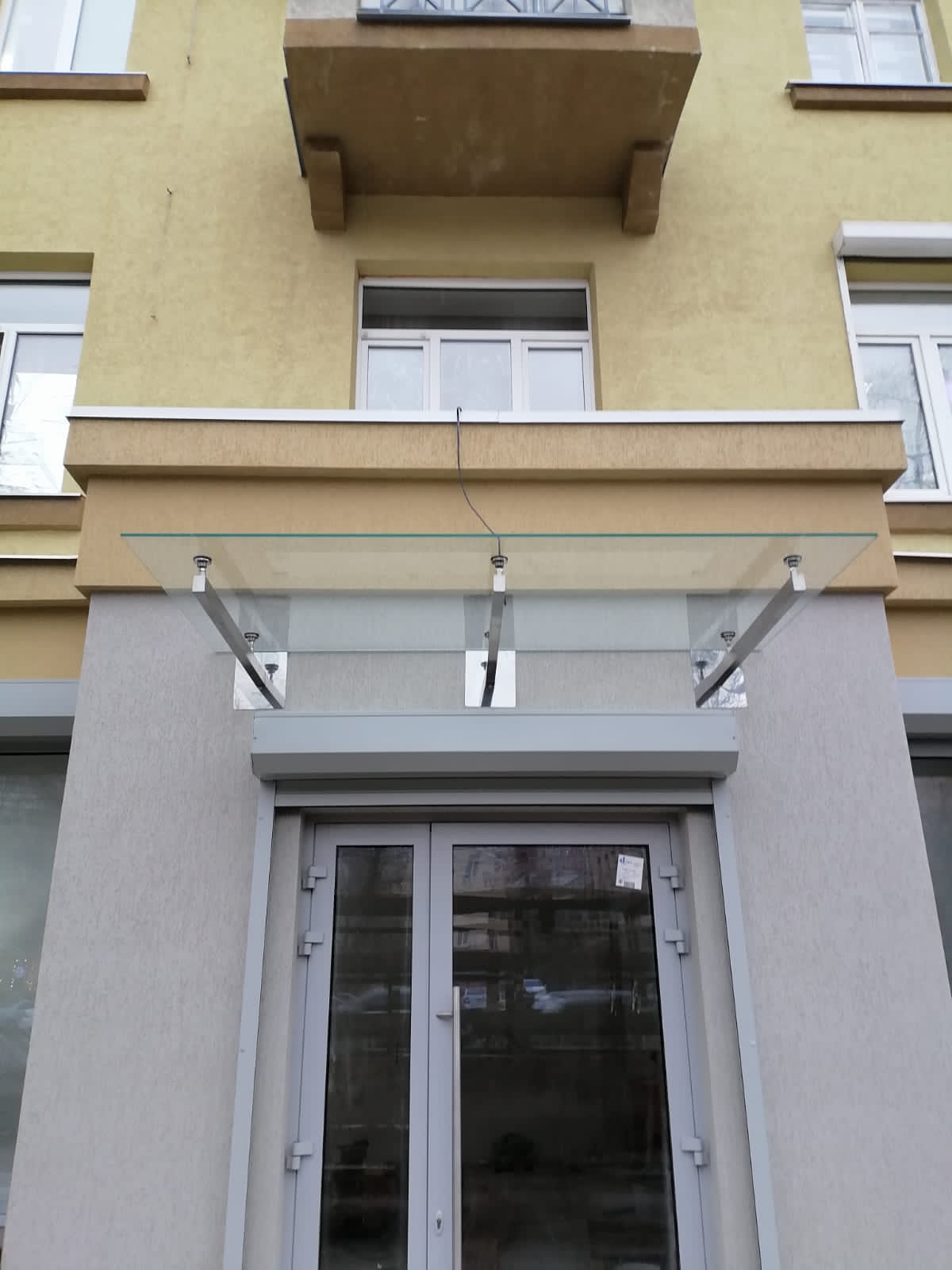 В случае, если необходимо установить стеклянные козырьки на большие площади, мастера создают дополнительные несущие конструкции. Для таких целей чаще всего используется нержавеющая сталь, или другой обработанный металл.